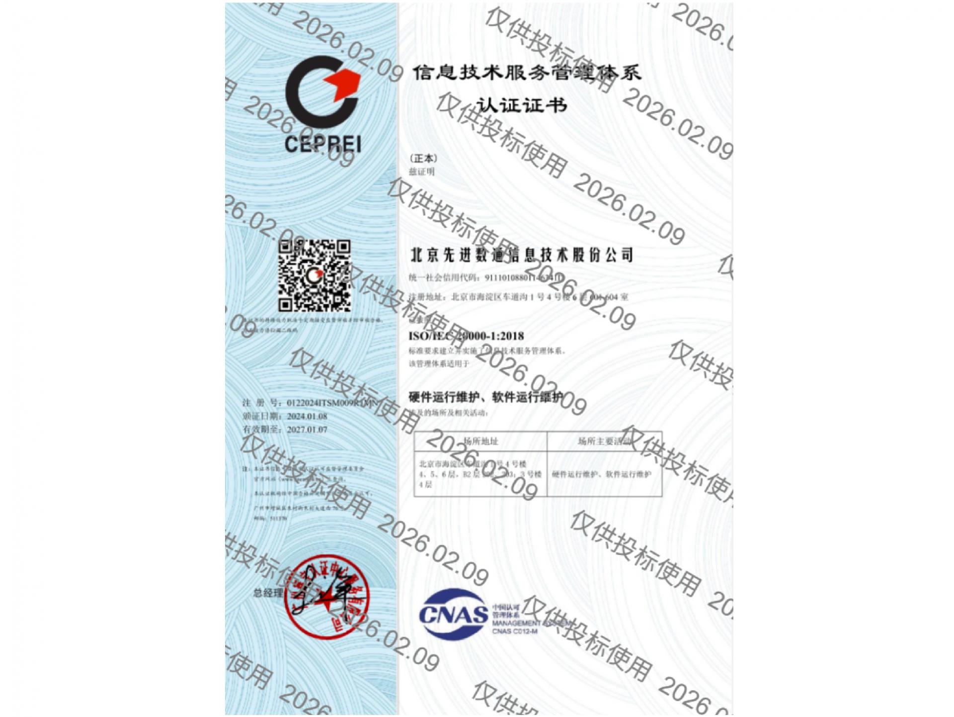 • ISO20000信息手艺服务治理系统认证