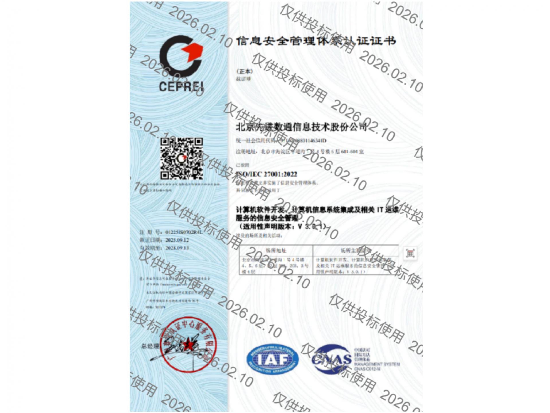 • ISO27001信息清静治理系统认证