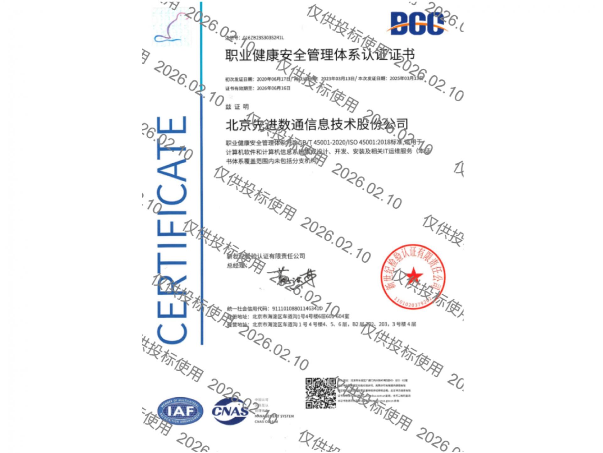 • ISO45001职业康健清静治理系统认证