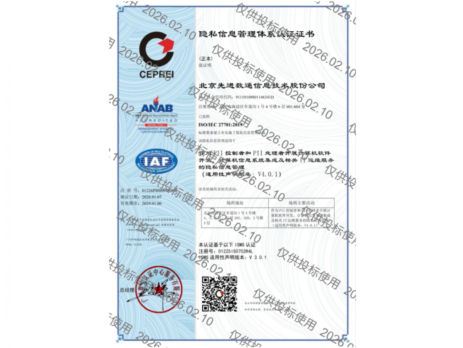 • ISO27701隐私信息治理系统认证